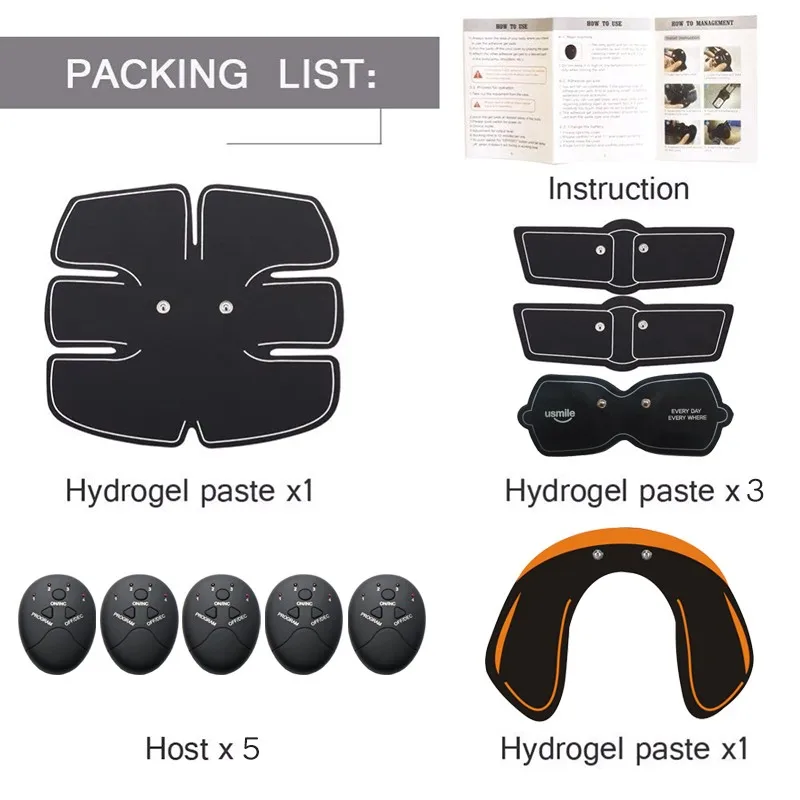 EMS muscle toner for Abs fitness training workout electric muscle stimulator abdominal massage electric body slimming massager Slimming Machine with Vibration five in one set.