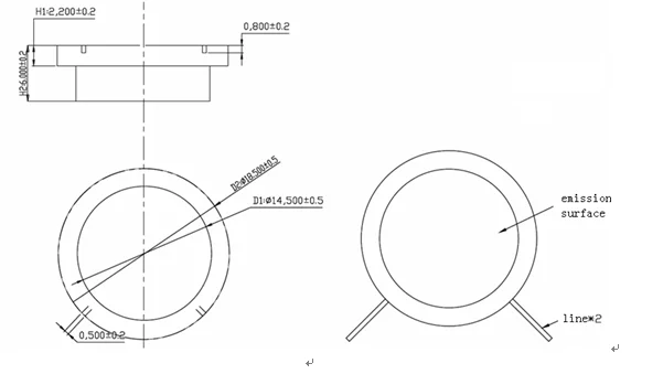 Parts shall be measured under a condition (Temp.:25℃±3℃, Humidity: 40%~70% R.H);Output voltage of standard signal source:20Vp-p,7cycles,Rated frequency square wave,pulse interval:ms;Vertical distance of transducer transmitting surface :70mm,Horizontal opposition;Receiving peak voltage of oscilloscope.