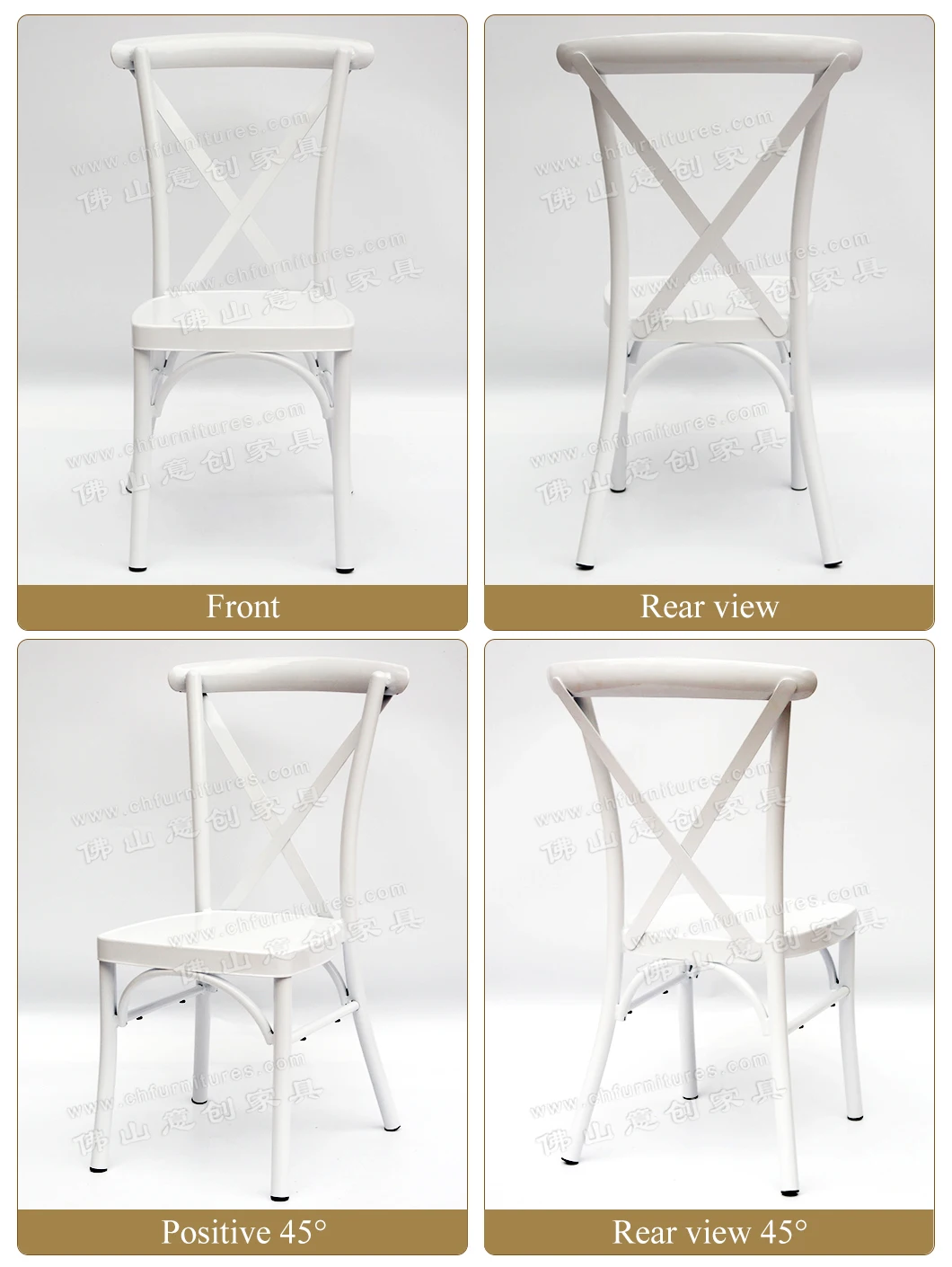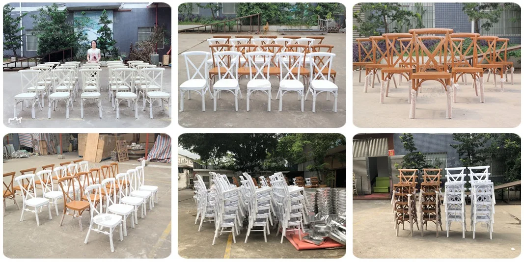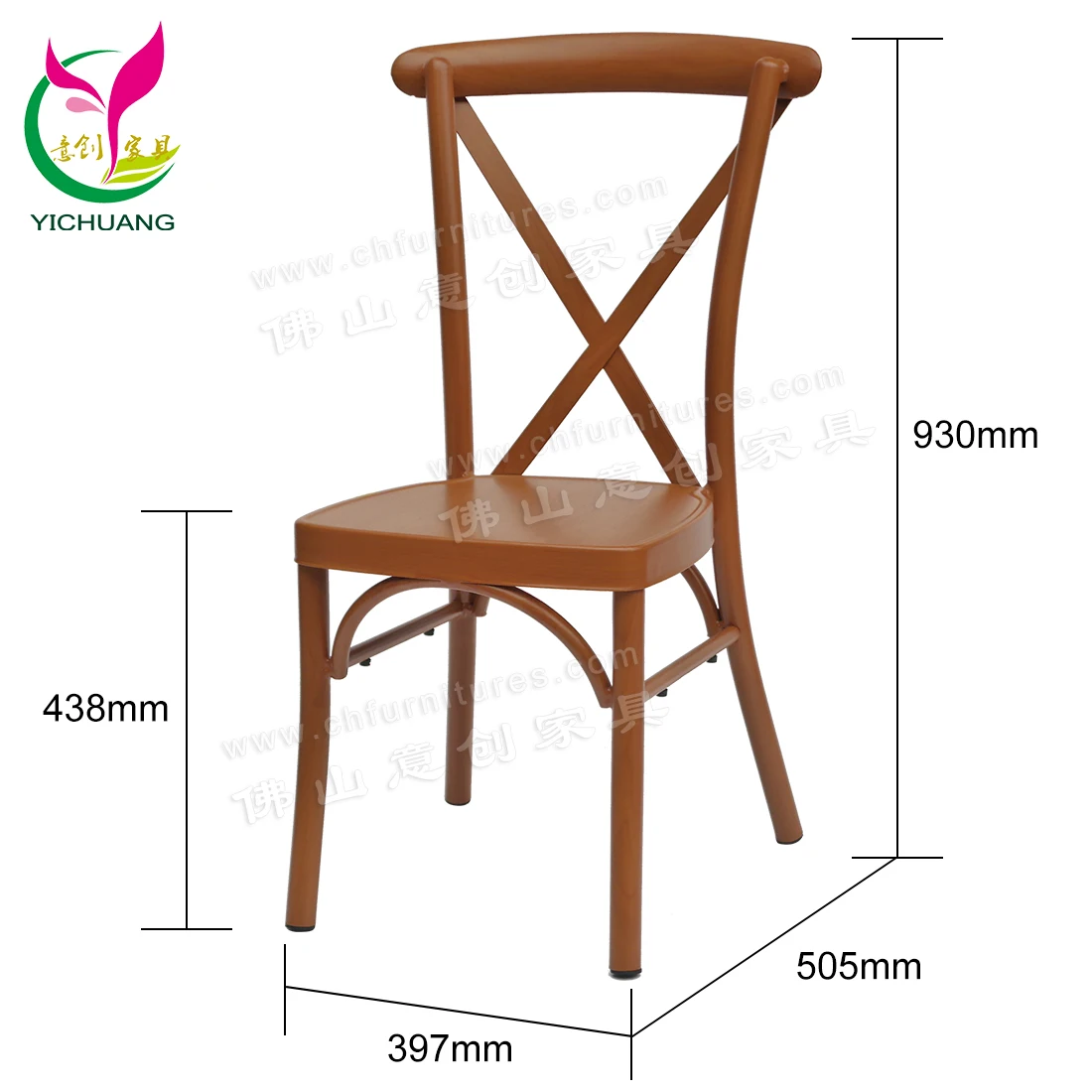 Outdoor aluminum wooden grain finish dinning restaurant x cross back wedding chairs for rental