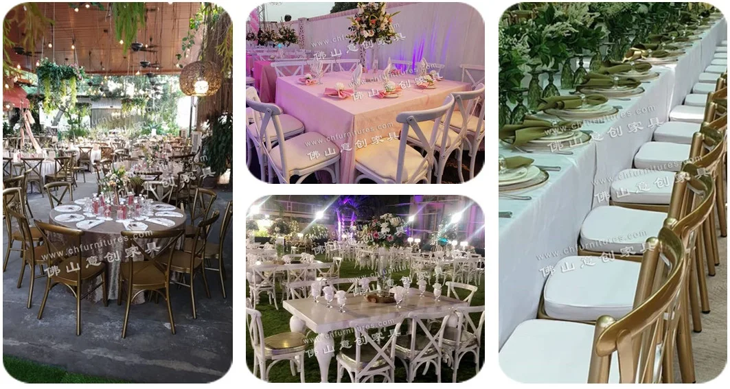 1.Widely Use: wedding, high-end banquet, hotel, event and all the other banquet places. 2.Chair Frame: cast aluminum structure. 3.Easy to clean and maintain all the year around. 4.More than 1000 pounds weight capacity.