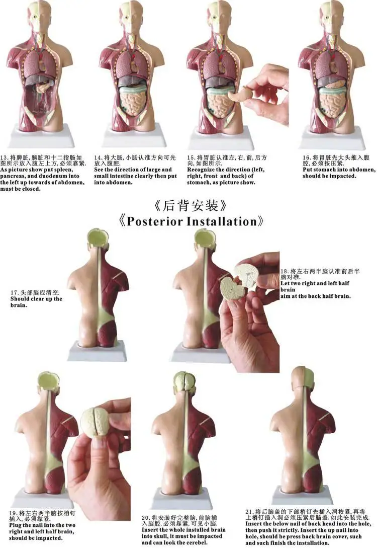 Parts | Brain-2 components Eyeball-1 component Lung-2 components Heart - 2 components Liver-1 component Renal profile - 1 component Pancreas, spleen and duodenum - 1 component Stomach-2 components Intestines and intestines - 3 parts Cecal section - 1 component Bladder - 1 component Section 12 thoracic spine with spinal cord - 1 component Trunk body - 1 component |