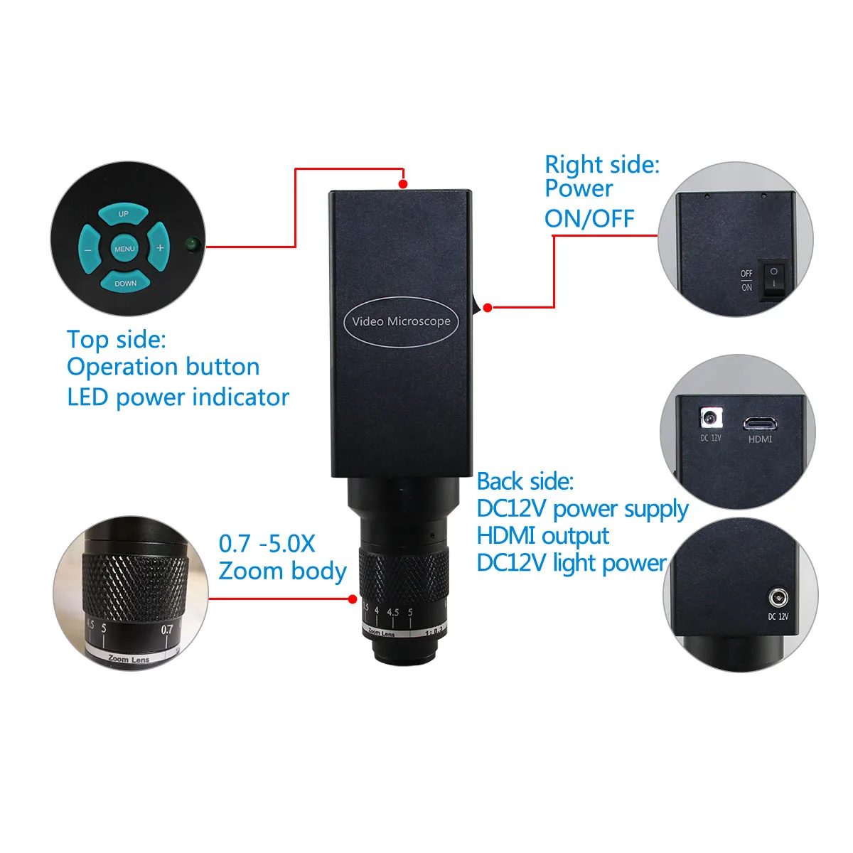 Total magnification | 12-92X(base on 11.6 inch monitor) | ||