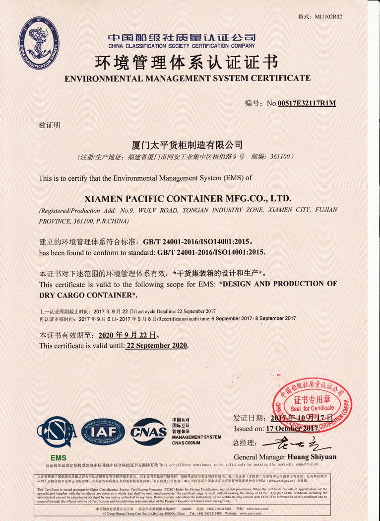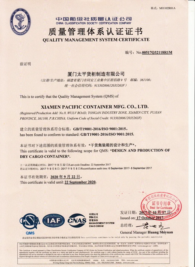 Our basic information are as follows: 1. company size : over 25 acres 2. workers: More than 500 3. registered capital : 23Million USD 4. Production Line: two lines 5. Production Capacity: 70,000TEU Annually in two shifts. 6. Quality System: ISO 9001-2015 Certified by CCS. 7. Main Products: ISO Standard Dry Cargo Containers, Customized Container and House Container etc.