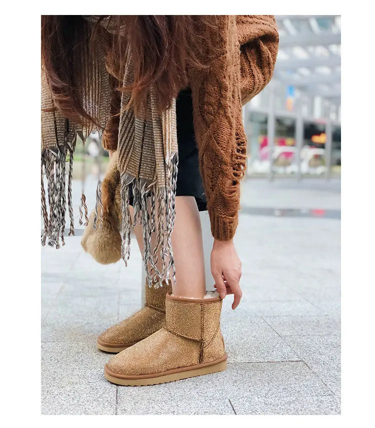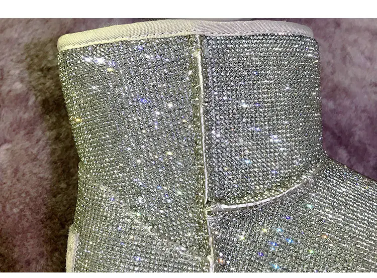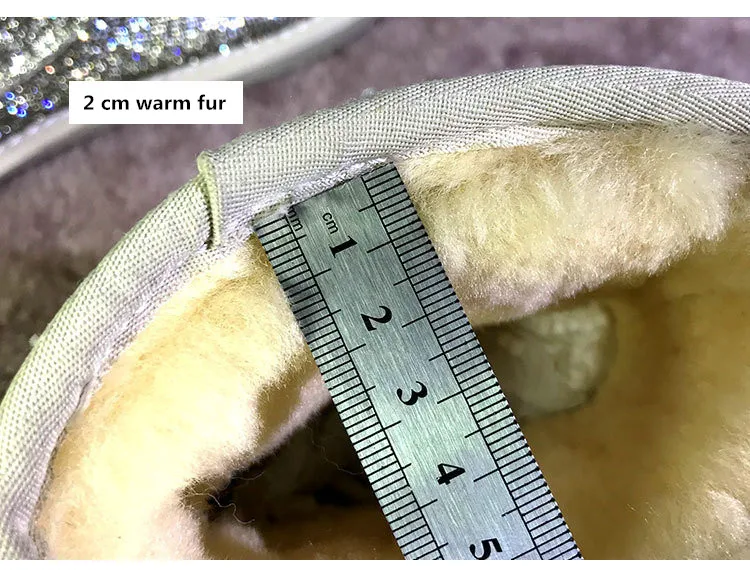 Handmade Crystal Warm Winter Boots Women Furry Snow Boots Bling Rhinestone Ankle Boots