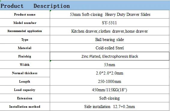 Hot sale 53mm Soft closing Heavy Duty Drawer Slides