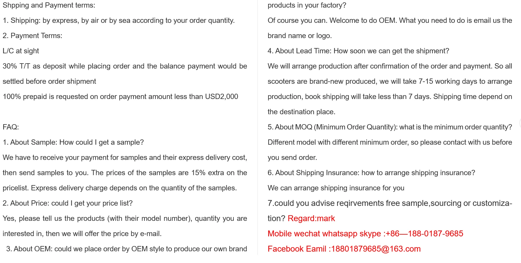We offer free sample, free catalogue, free sourcing, customized product, cost reduction and so on to our customers.
