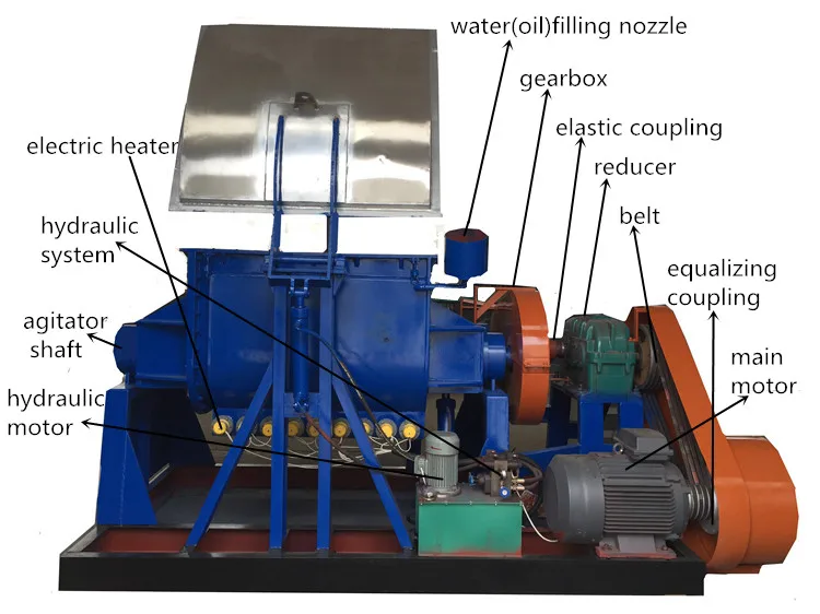Double sigma (Z arm) blade: different rotational speeds produce strong shearing, squeezing and agitation to make the viscous material mix evenly.