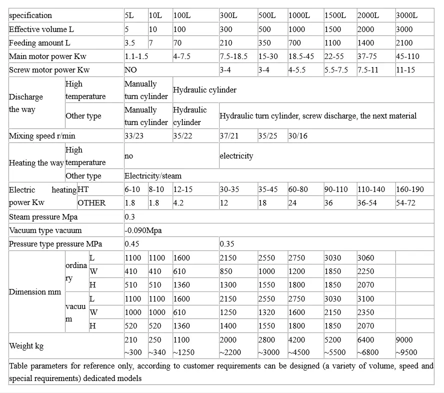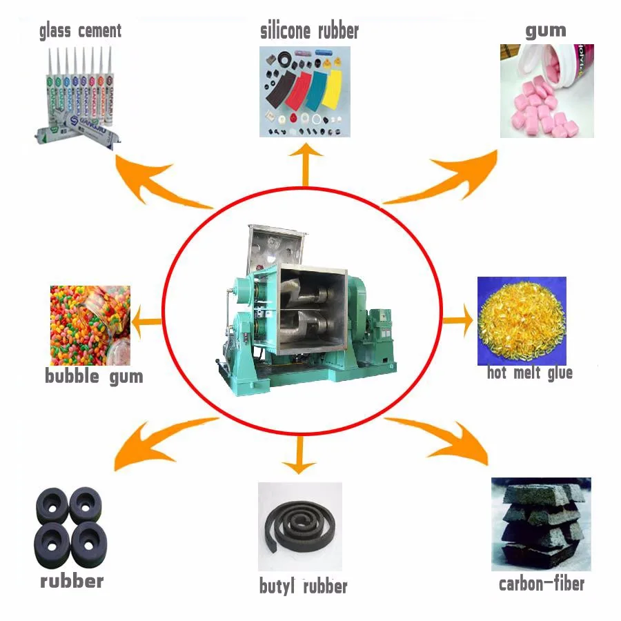 The kneader is an ideal equipment for kneading, mixing, vulcanizing, and polymerizing high-viscosity, elastic-plastic materials. The kneader can be used to produce silicone rubber, sealants, hot melt adhesives, food gum bases, pharmaceutical preparations, etc. The kneader is a special mixing and stirring device. The most commonly used is two Σ paddles, which are arranged side by side tangential differential type, that is, one mixing paddle is fast, and one mixing paddle is slow, so that Shear force and different paddle speeds allow the mixed materials to be cut quickly, so that the materials can be mixed uniformly.