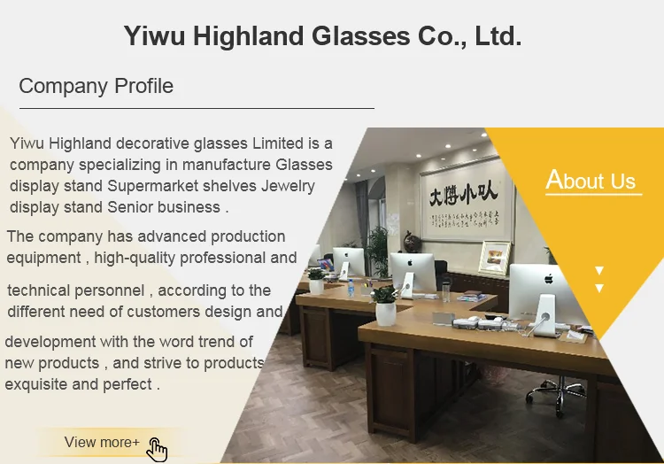 Yiwu Highland decorative glasses Limited is a company specializing in manufacture Glasses display stand Supermarket shelves Jewelry display stand Senior business . As an innovative growth companies , the company has always been adhering to the " all rivers run into sea , tolerance is a virtue " spirit of enterprise , arouse employee enthusiasm , learning and innovation , continues improvement , enhance the cohesion and combat effectiveness . With "quality first , integrity first , Mutual benefit " principle of service , so that products are exported to Europe , America ,Southeast Asia and other parts of the word , won the majority of users of praise and favor . The company has advanced production equipment , high-quality professional and technical personnel , according to the different need of customers design and development with the word trend of new products , and strive to products exquisite and perfect .