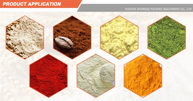 The powder packing machine is widely used in food factory, chemical factory, suitable for packing all kinds of powder product, such as, rice flour, coffee powder, sulfur powder, milk powder, seasoning powder.