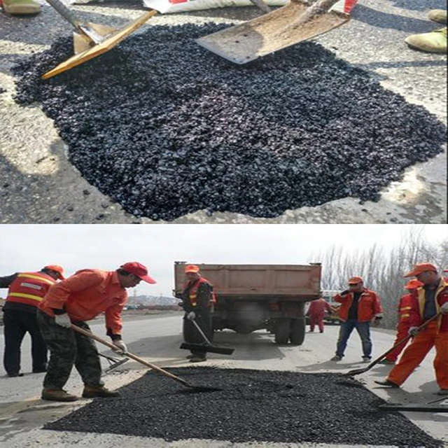 The cold filling material adopts special methods to modify the asphalt, so that the asphalt has excellent adhesion, pressure-sensitive and viscoelasticity. After proper compaction, it can stick to the repair for a long time without falling off.Cold cold material belongs to pressure viscosity and before being rolled over, has the very good loose, operation is convenient, but once after rolling, the materials good bonding performance highlights, can quickly form a high strength and stability, can repair the road under all-weather conditions, easy to operate, repair of good quality and and after many years of application, performance improved continuously, at present has been widely applied in various provinces and cities road pavement repairing, and is becoming more and more recognition and welcome by the road maintenance department.