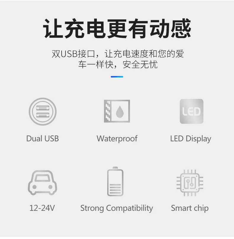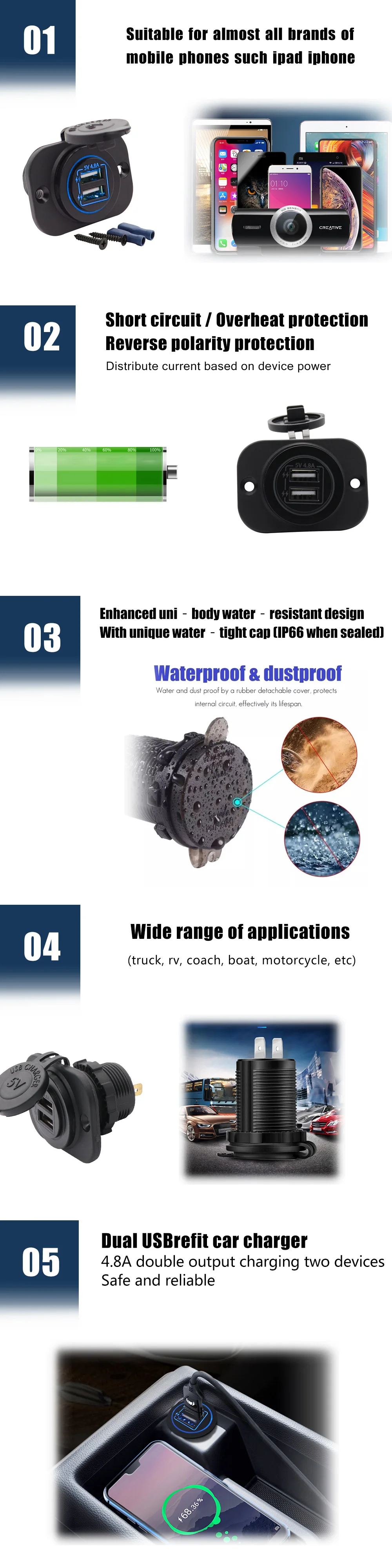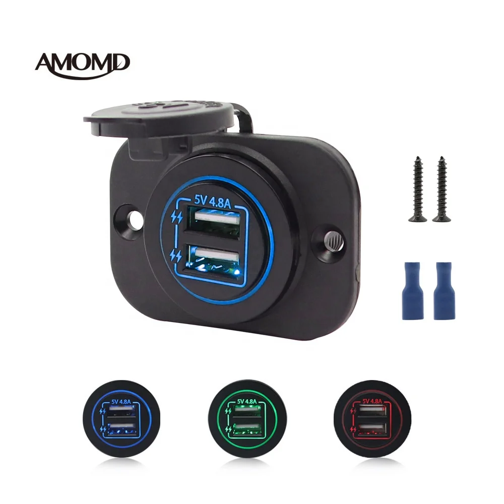 Amomd Single Face Plates Marine and Car USB Socket Charger Port 4.8A LED Waterproof Dual Port Fast Charge