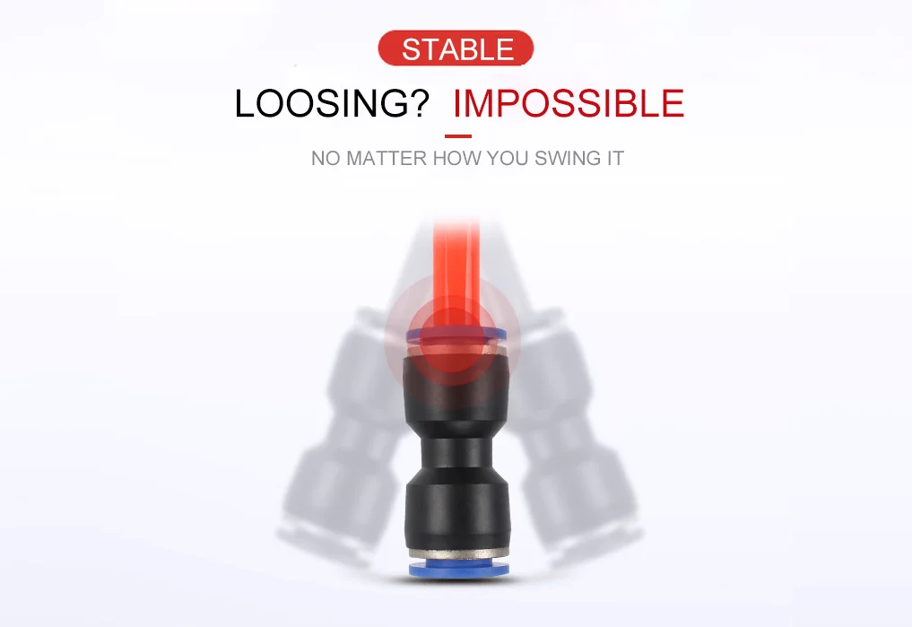 The stainless circlip in the pneumatic fittings can bite the hose, so that make the connection more stable between the hose and fitting.