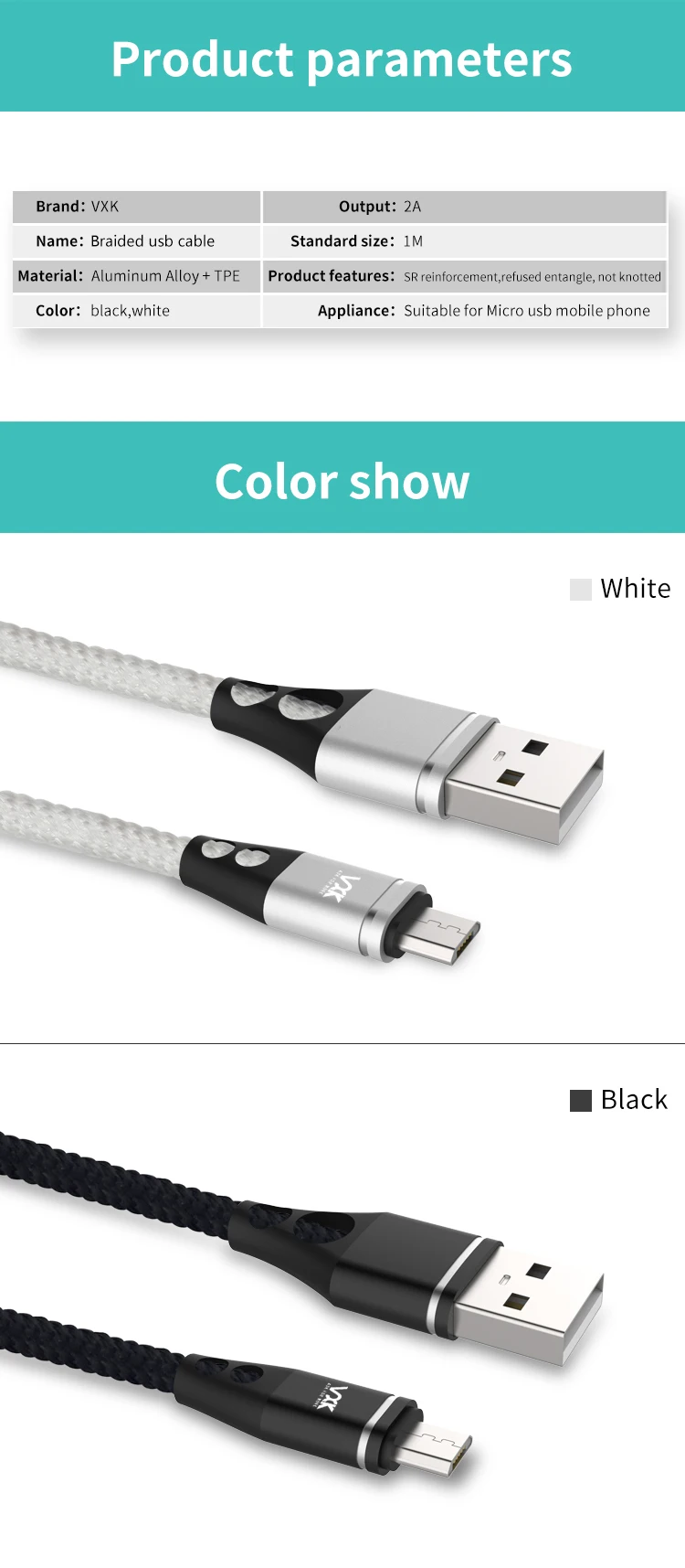 Advantage: | Nylon braided +Metal head.Durable and strong | ||||