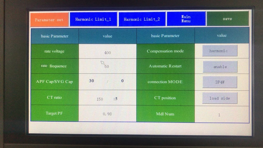 Compensation mode | Including: Harmonic compensation, reactive compensation, and three-phase load unbalance compensation function; one or more compensation modes could be set. | |