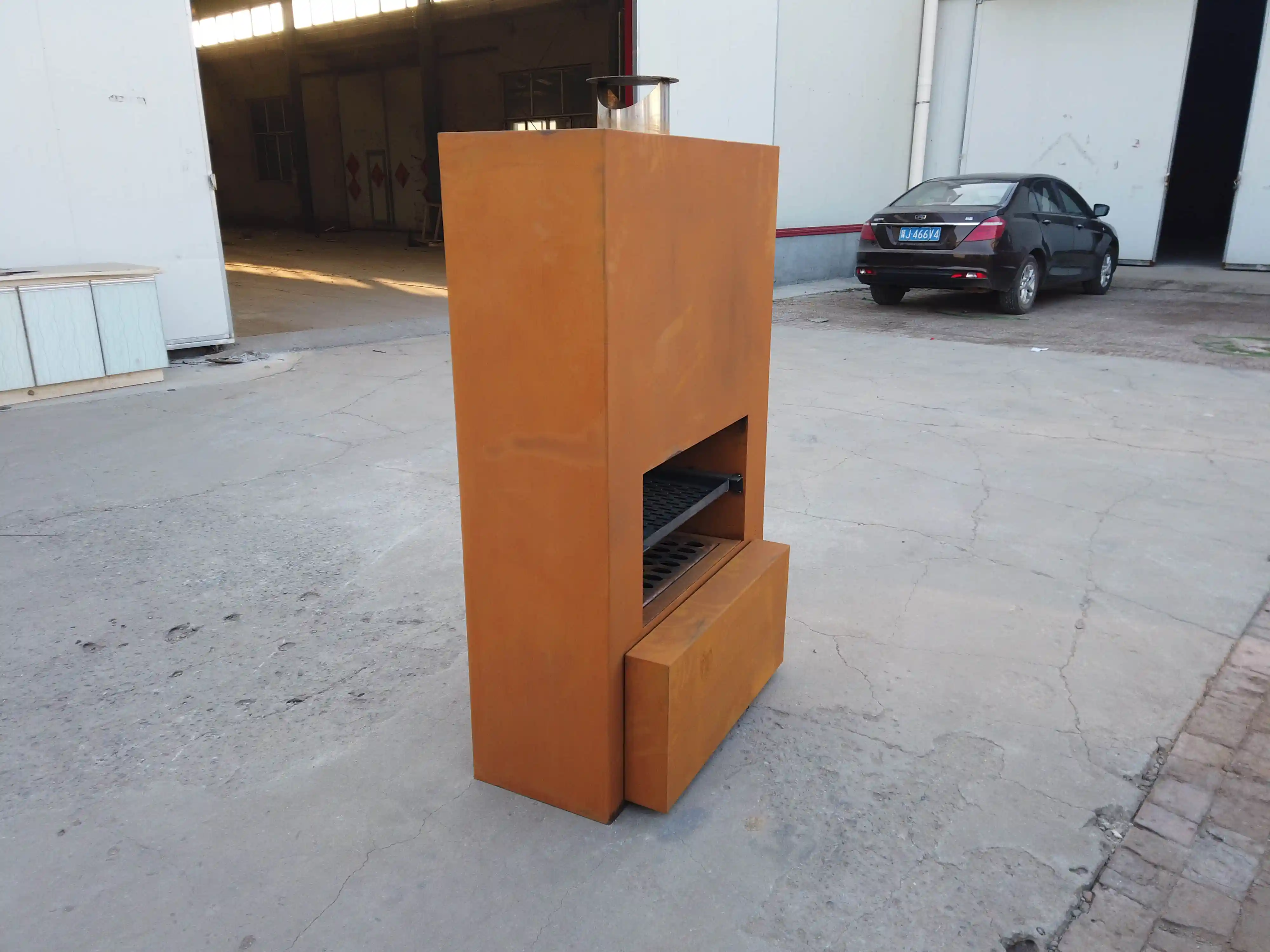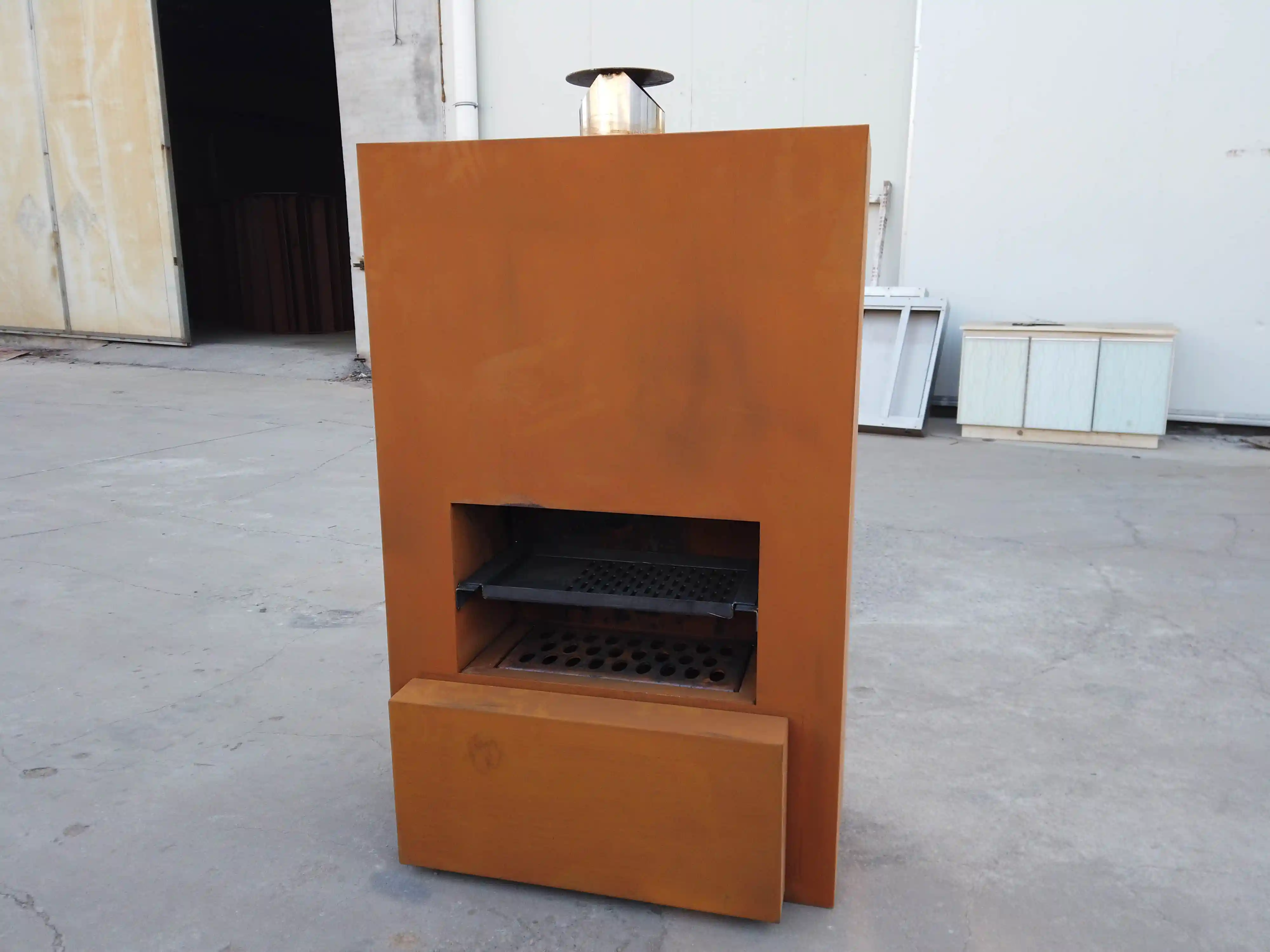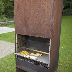 The Corten metal outdoor garden fireplace is very unique in design and would be the focus of any garden or on a patio or terrace.