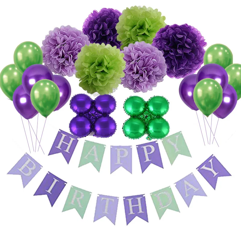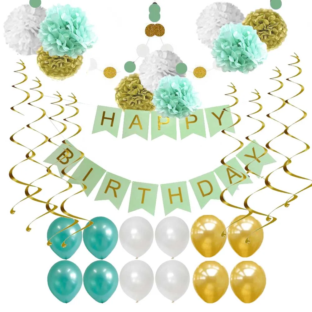 Green And White Birthday Decoration Set Happy Birthday Banner Bunting for Birthday Party Decorations