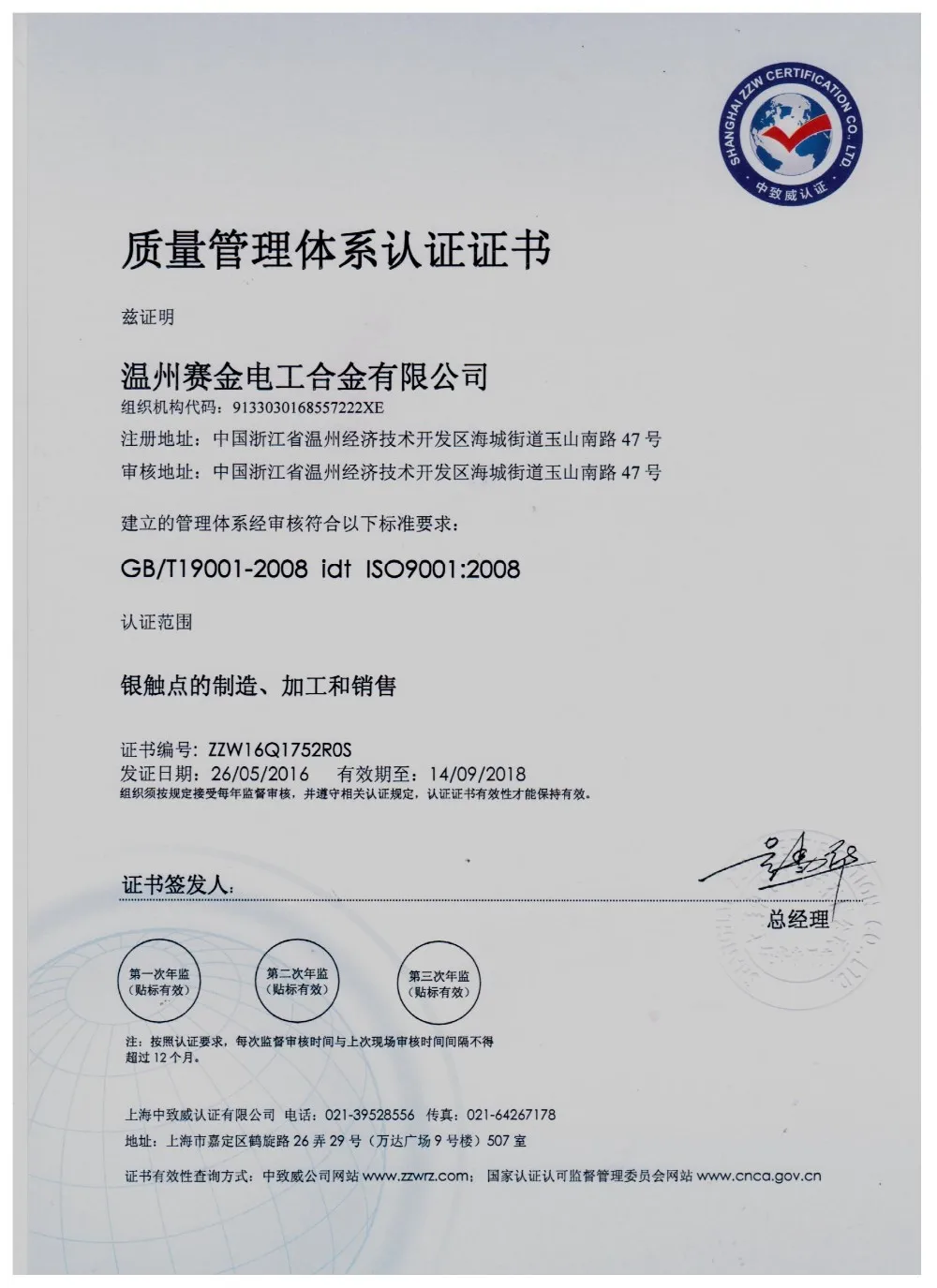 Passed the ISO9001:2008 quality system authentication