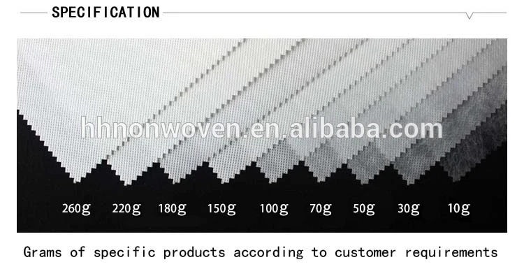 1) Packing Supplies: Packing bag, shopping bag, suit cover, light wardrobe, shoes substrate, decoration 2) Agriculture: Anti-UV nonwoven fabric for agriculture fabric, insulation, pest control, and crop protection 3) Medical use:Face Masks, Surgical Drapes & Wraps, Slippers, Shoe Covers, bed sheets, pillow cases and other disposable nonwoven products. 4) Home textile: Furniture, Table Cloth, Bed sheet, Wallpaper, mattress, cushion, roofing, etc