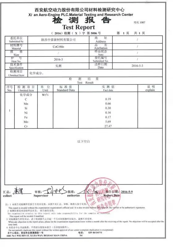 Shaanxi china titanium new materials co., ltd is a high-tech enterprise. Located in Baoji, China's titanium valley. CONSARC vacuummelting and casting furnace imported from the United States. Our business scope includes: