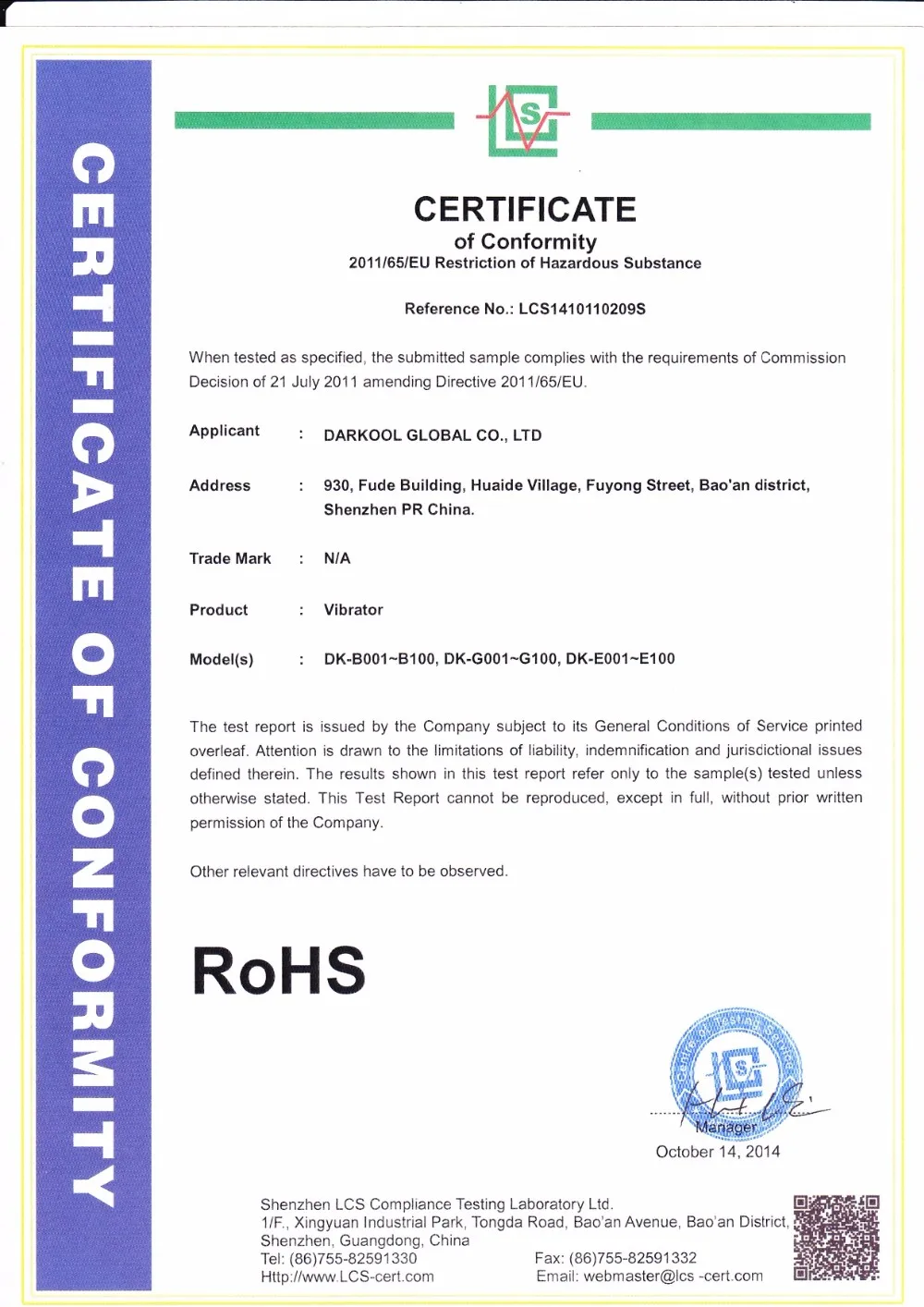 Certification | Passed CE,ROHS |