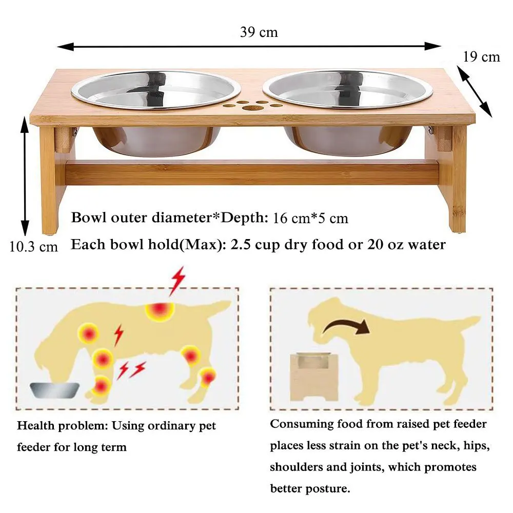 Product Name | Anti Slip Feet Bamboo Elevated Dog Cat Food and Water Bowls Stands Feeder Dishes with 2 Stainless Steel Bowls | ||||||