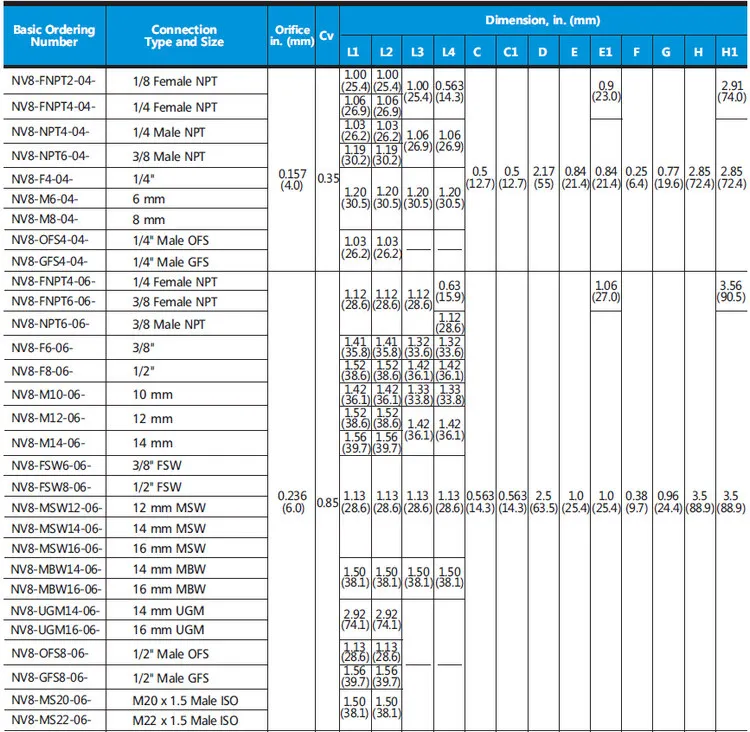 Type | Needle Valve | ||||||