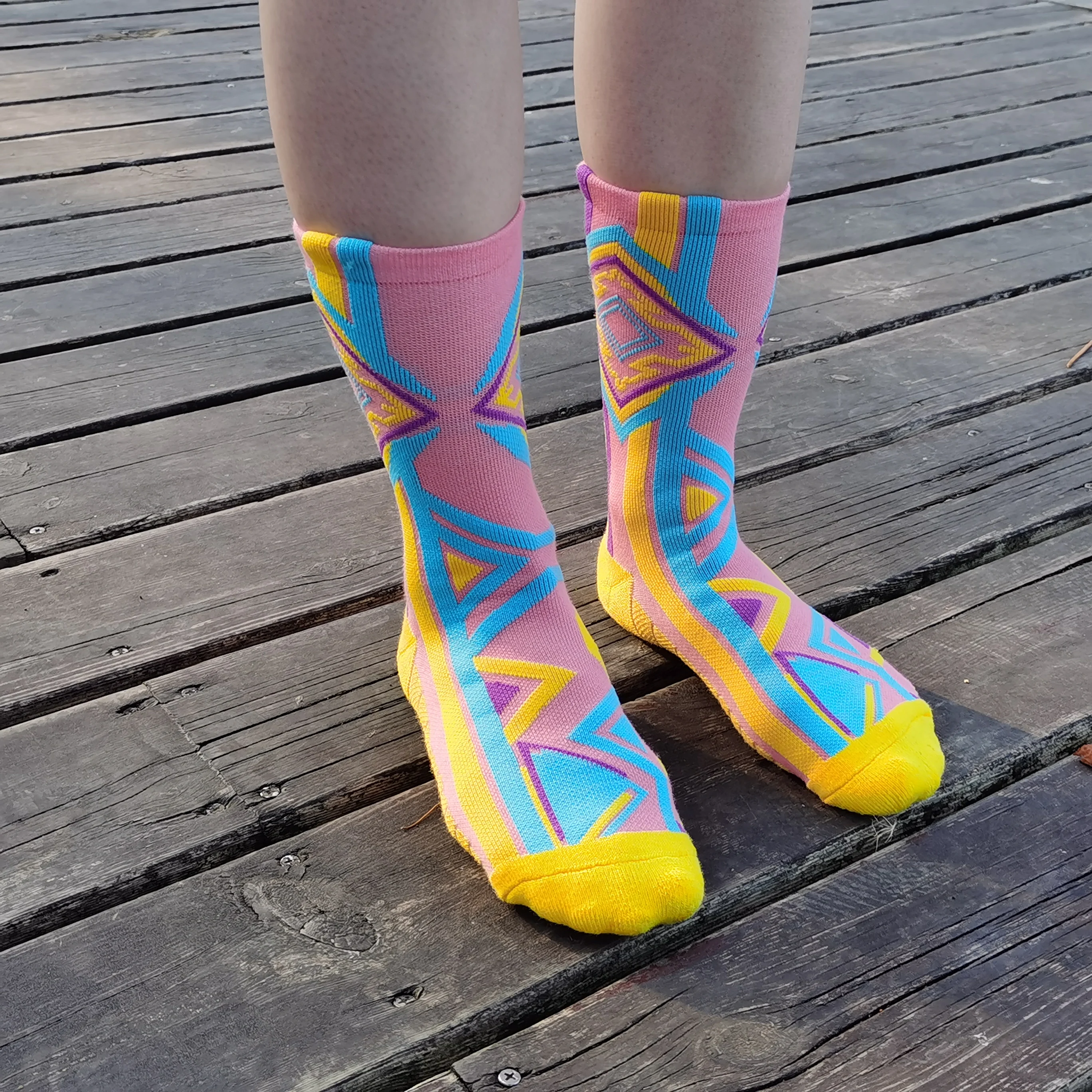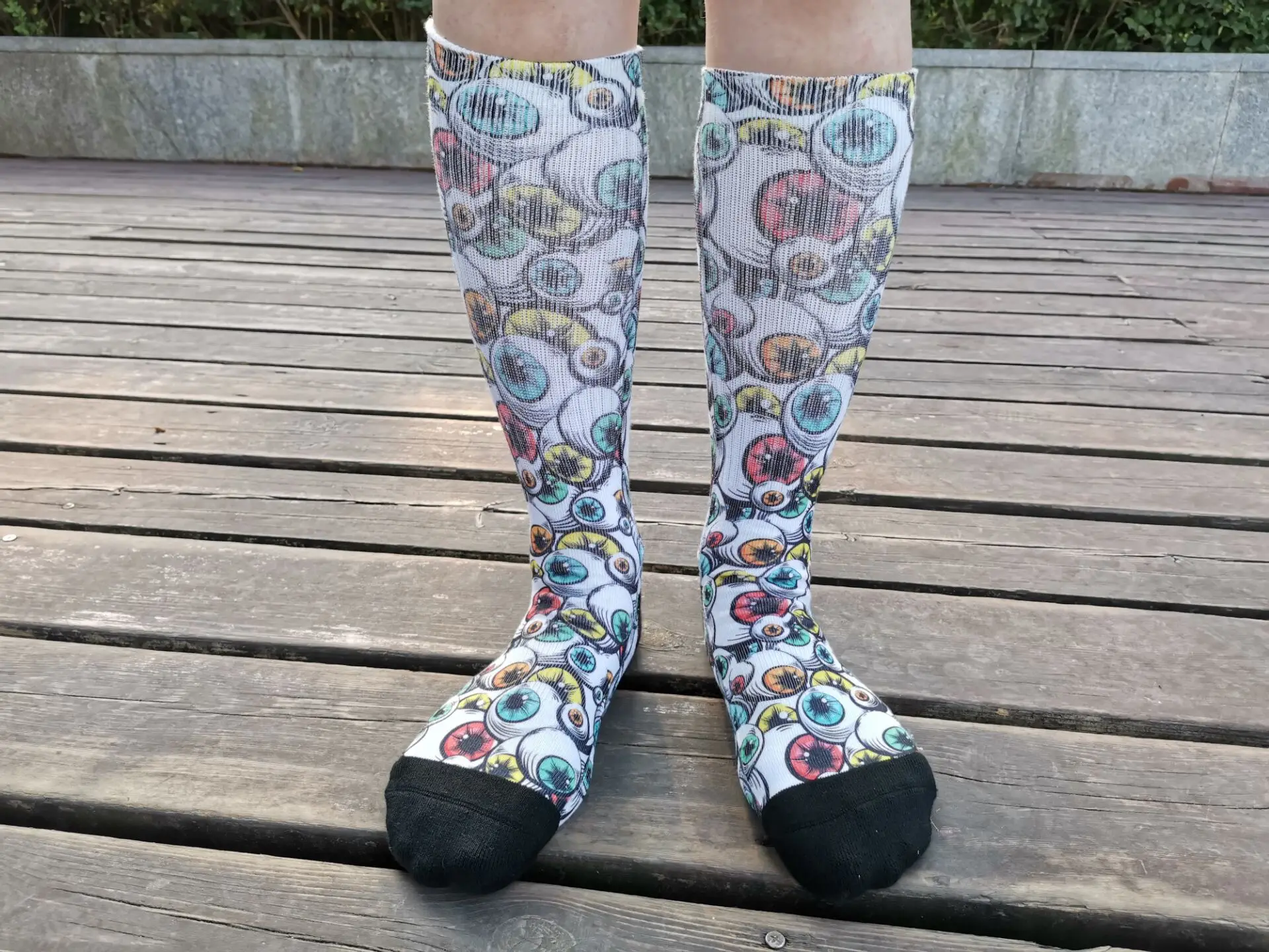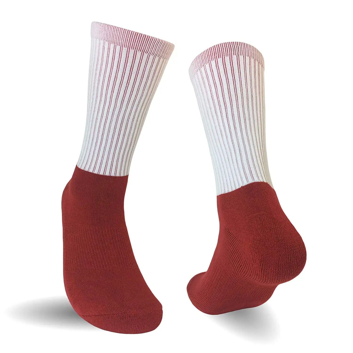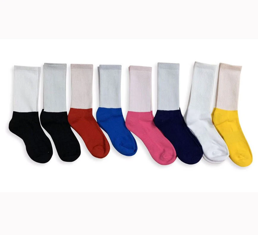 Product Name | White sublimation printed socks with different colors of cotton foot |