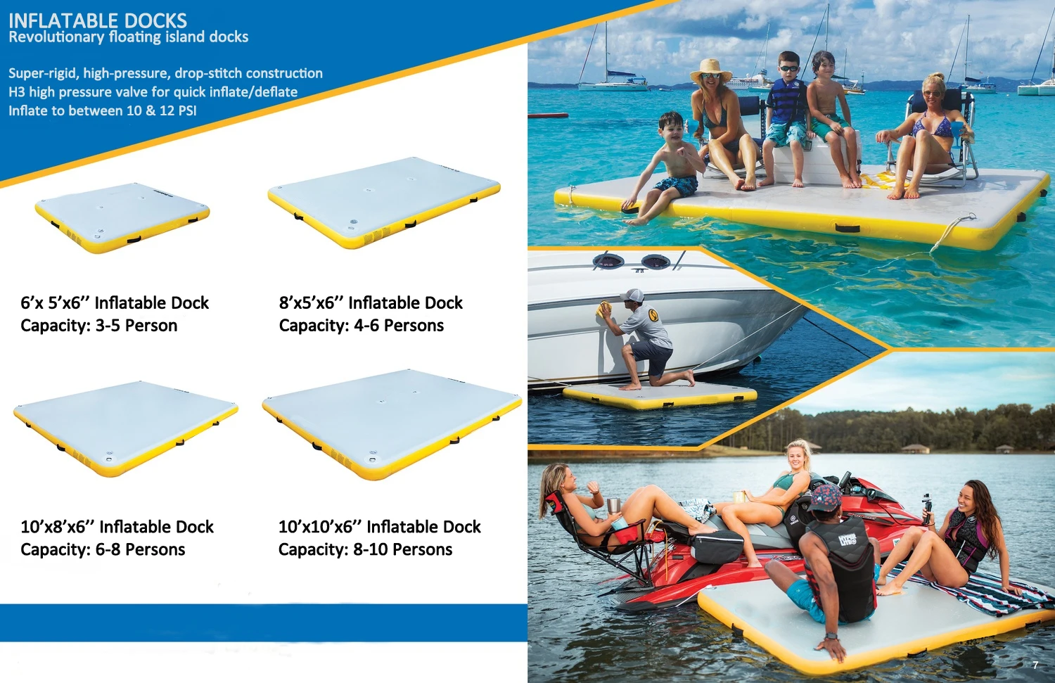 SPECIAL FEATURES | Capacity: Inflatable dock is available in muilt sizes to fit up to 3, 4, 6, or 8 people. | ||||