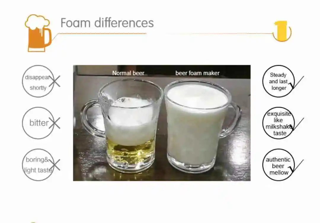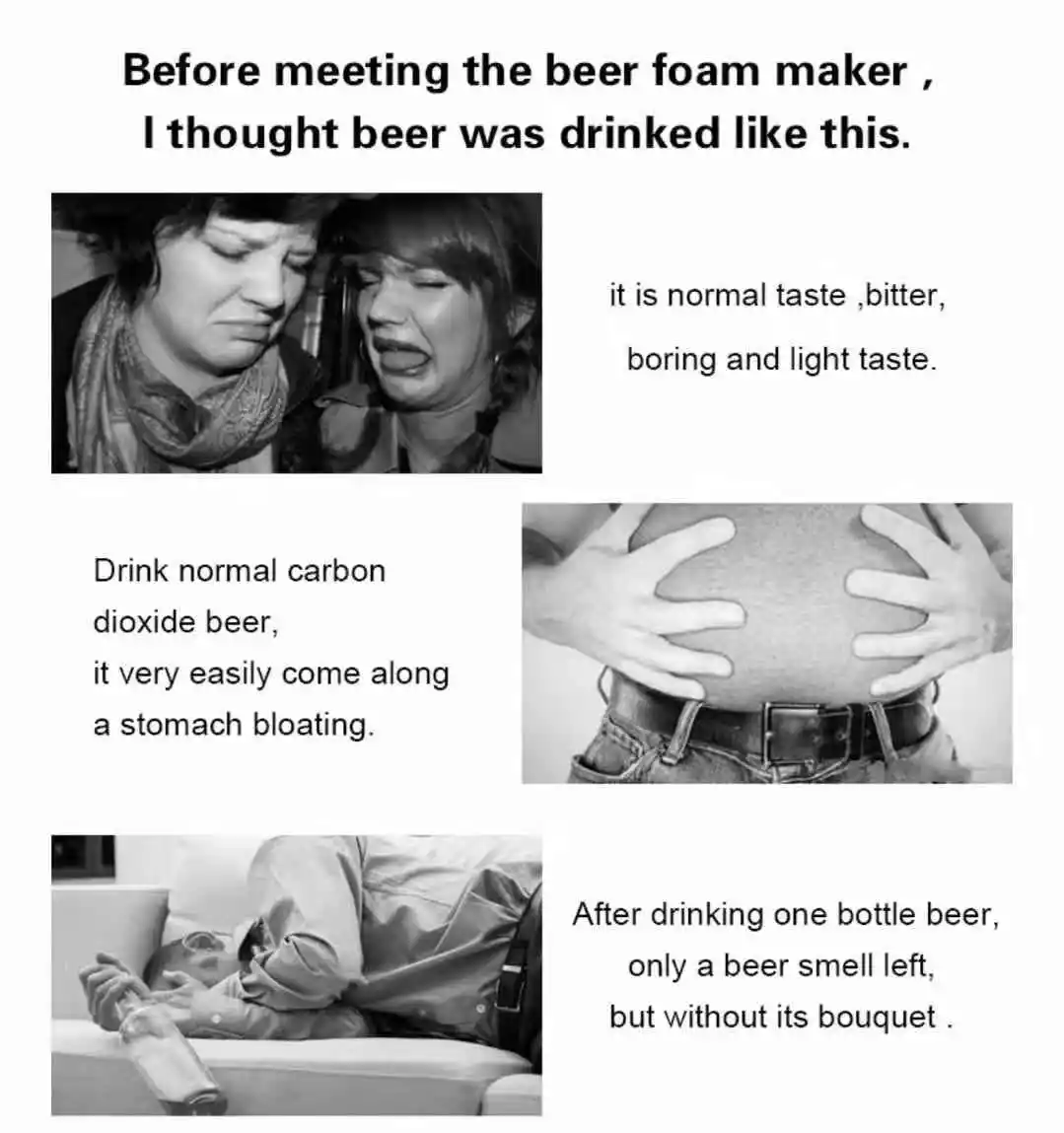 Beer foam is the existence of CO2 in beer in the form of dissolution, adsorption and compounds under certain pressure and low temperature. When fresh beer is beaten out of fermenter, due to pressure change and splash, CO2 is released from liquor and rises to liquid level. With the presence of viscosity of beer itself and some surface active substances, especially protein, the foam is not easy to burst and keeps for a period of time, forming a beautiful, white and delicate foam accumulation.what's the importance of the beer foam?1.Lock up malt aroma in beer,the foam will protect the beer from bad taste.