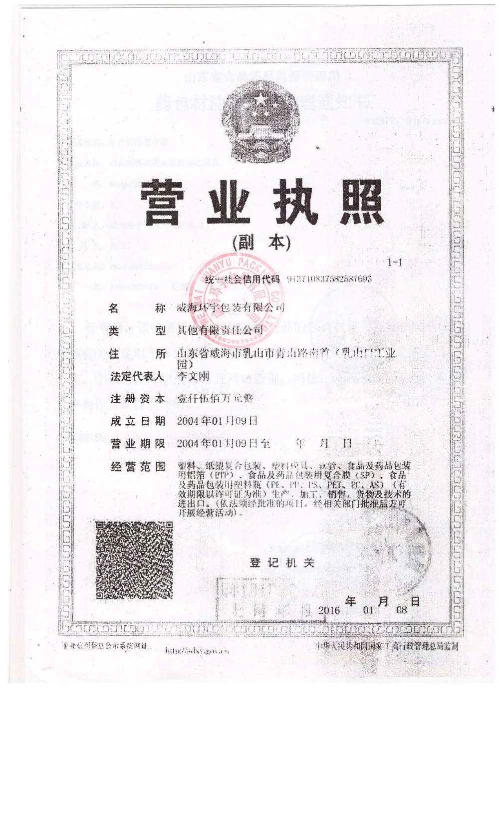 Shandong Angshi Group Co. Ltd mainly engaged in the decelopment and soolution to the phmarceutical and food packaging, as well as production, R&D of medicinal and food use desiccant, plastic bottles and silica gel series products. It has 2 main subsidiaries: Rushan Huanyu Chemical Industry Co., Ltd, and Weihai Huanyu Packaging Co., Ltd.