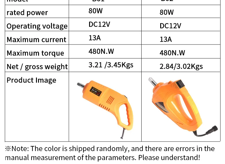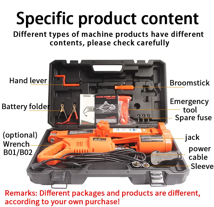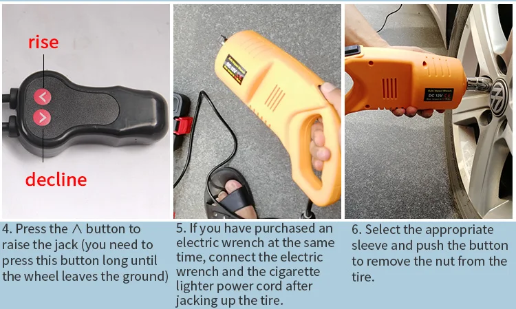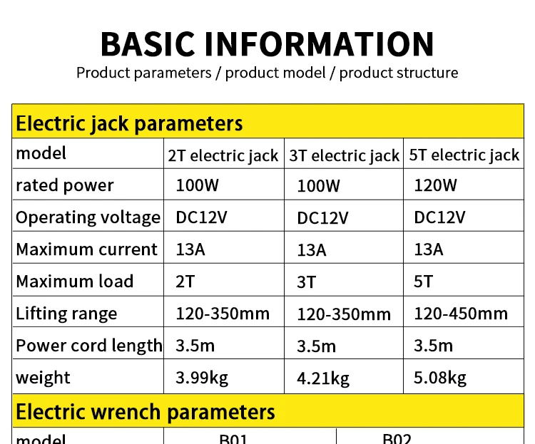 model | jack load | wrench torque | jack lift range | jack and wrench voltage |