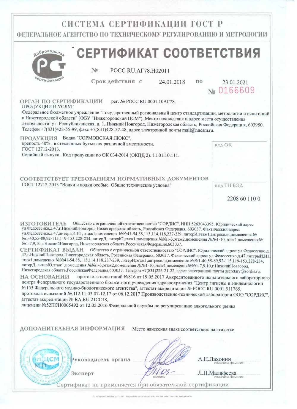 SORDIS LUX is ranked in TOP-20 of best Russian vodka according to the "Independent Laboratory of Vodka" experts.