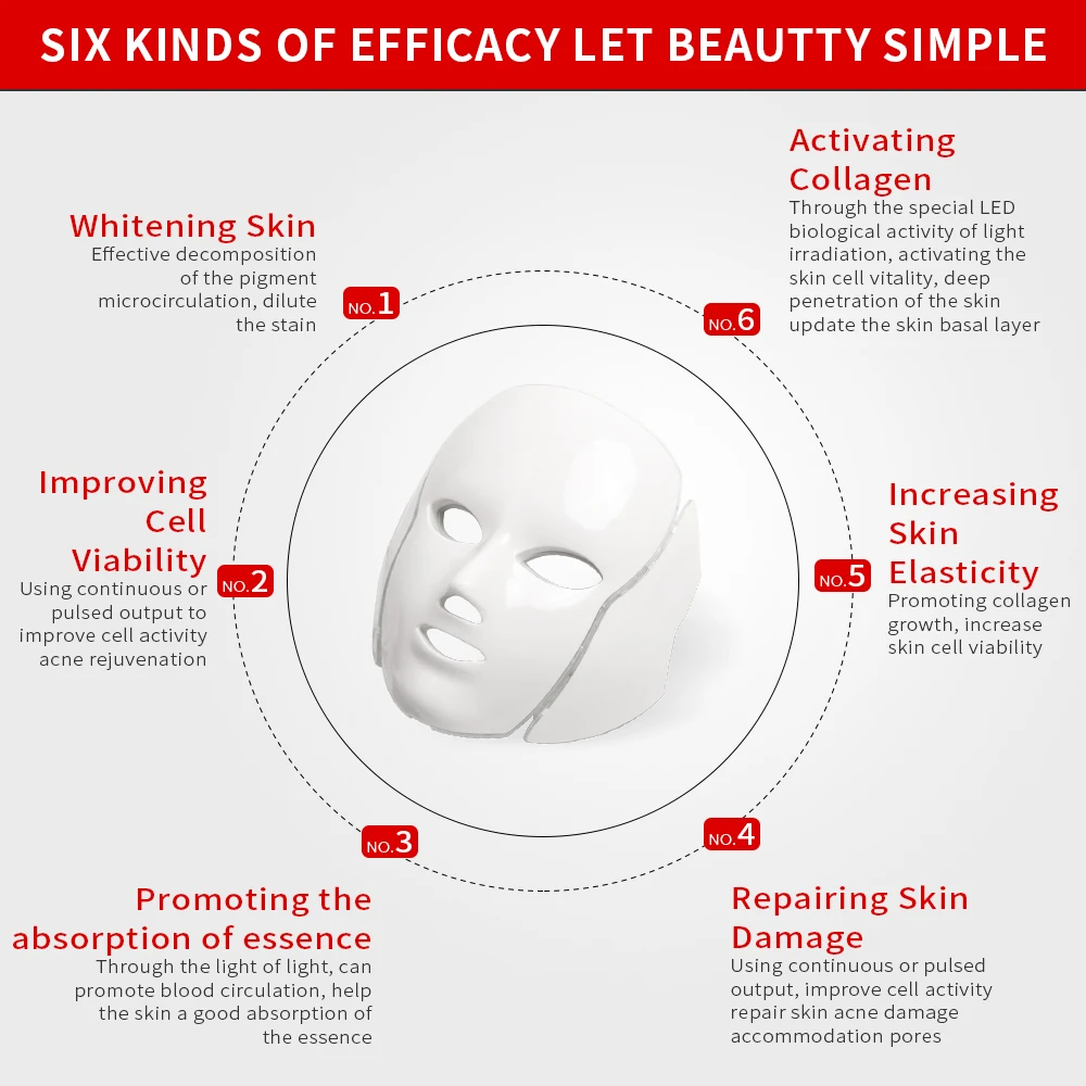 Feature | -100% Brand new and high quality -Help to Activated the collagen -Promote skin collagen growth, make the skin more translucent and white -Tighten pores, making the skin firmer, improve skin brightness, more smooth and elastic -Accelerate Detoxification -Effectively accelerate skin metabolism rate, promote the excretion of toxins of skin -Oxygen Increase -Promote skin permeability, increase oxygen to lock skin moisture -Repair Skin -Promote blood circulation, lighten freckless and red bloodshot -when using it on a daily basis for no more than 20 minutes per day. |