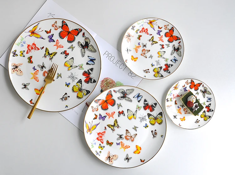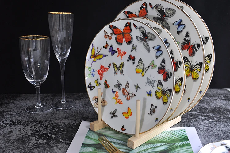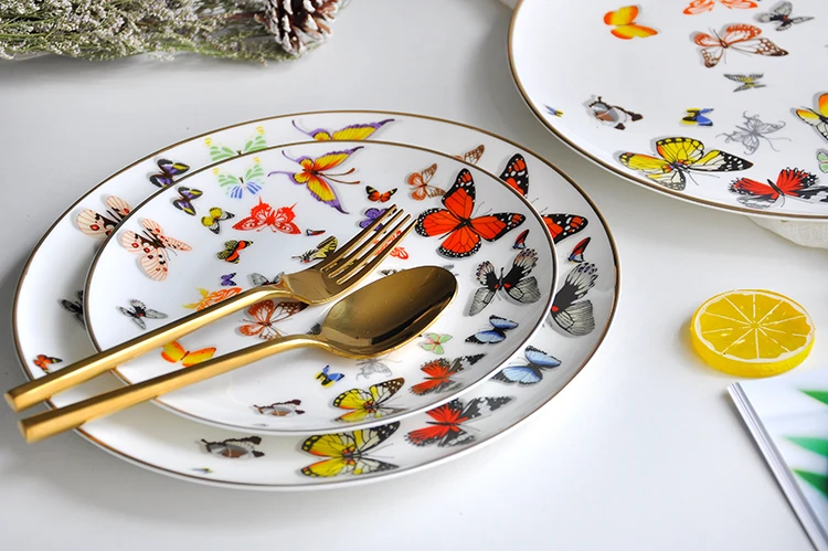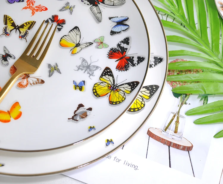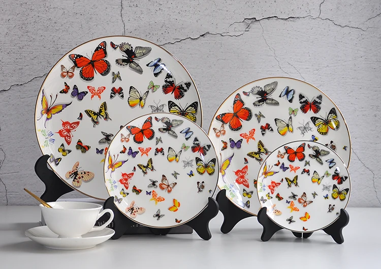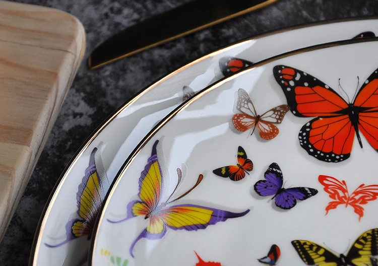 Name | Colored butterfly bone china gold charger plates for wedding |