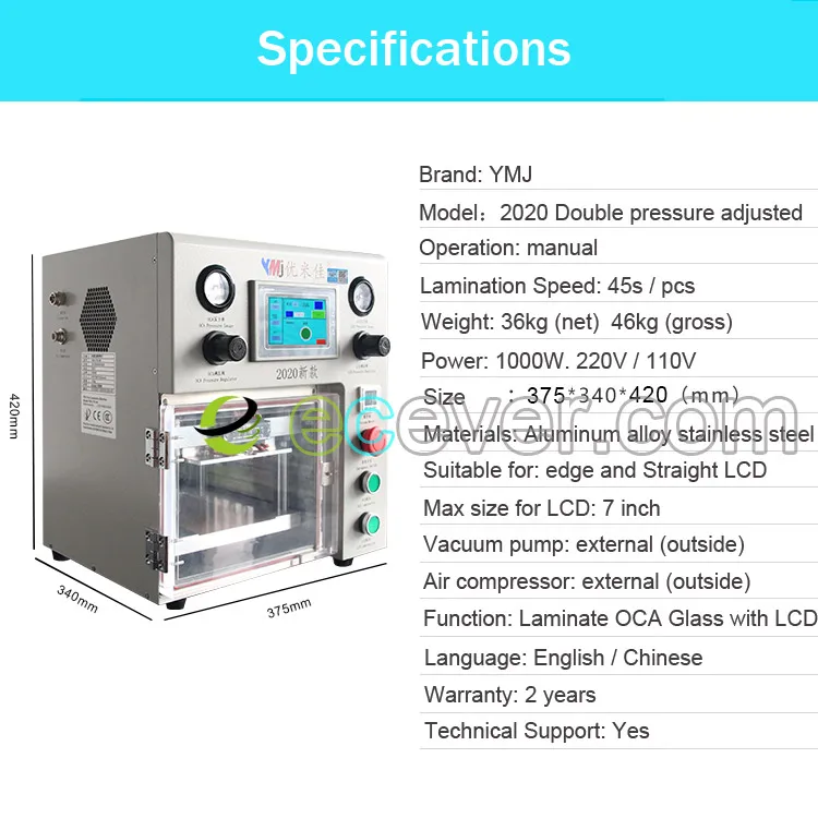 Product Name | 7 inch YMJ 2020 Dual Pressure Valve Adjustable LCD OCA Laminate Machine for iphone for samsung edge OLED Refurbish Regeneration |