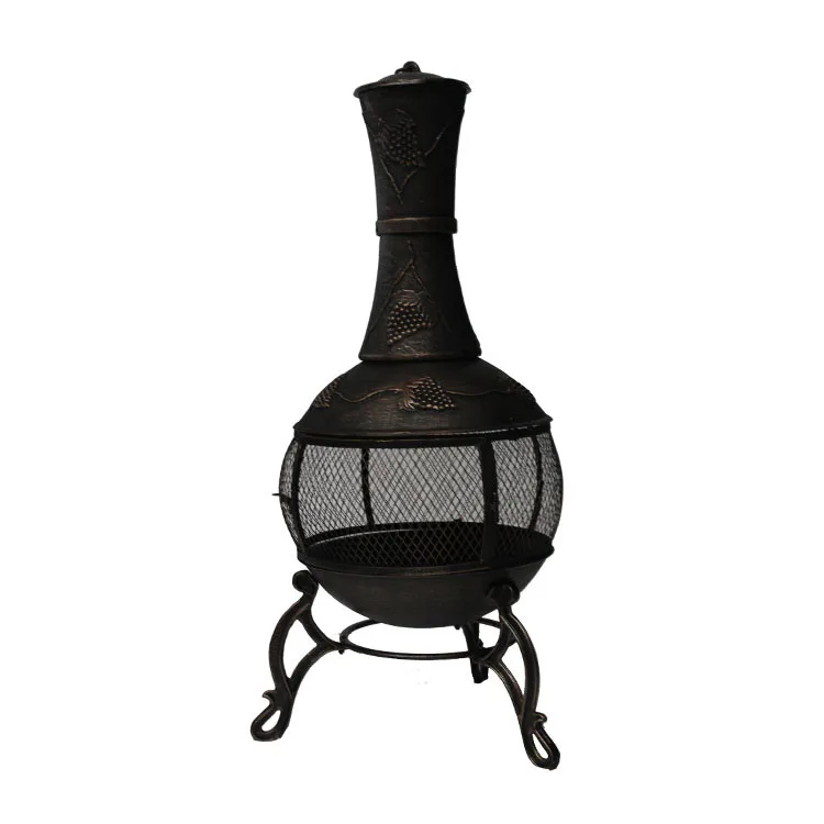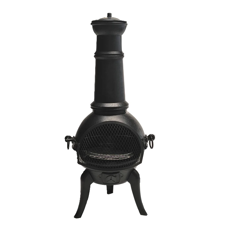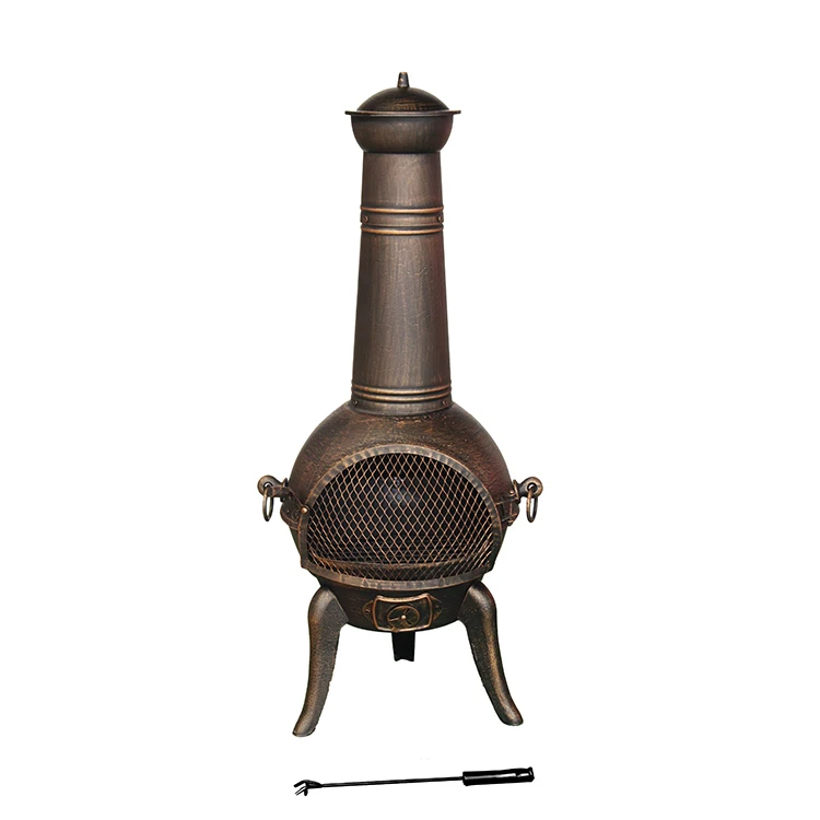 Description | Garden antique crafted cast iron chiminea with steel flue |