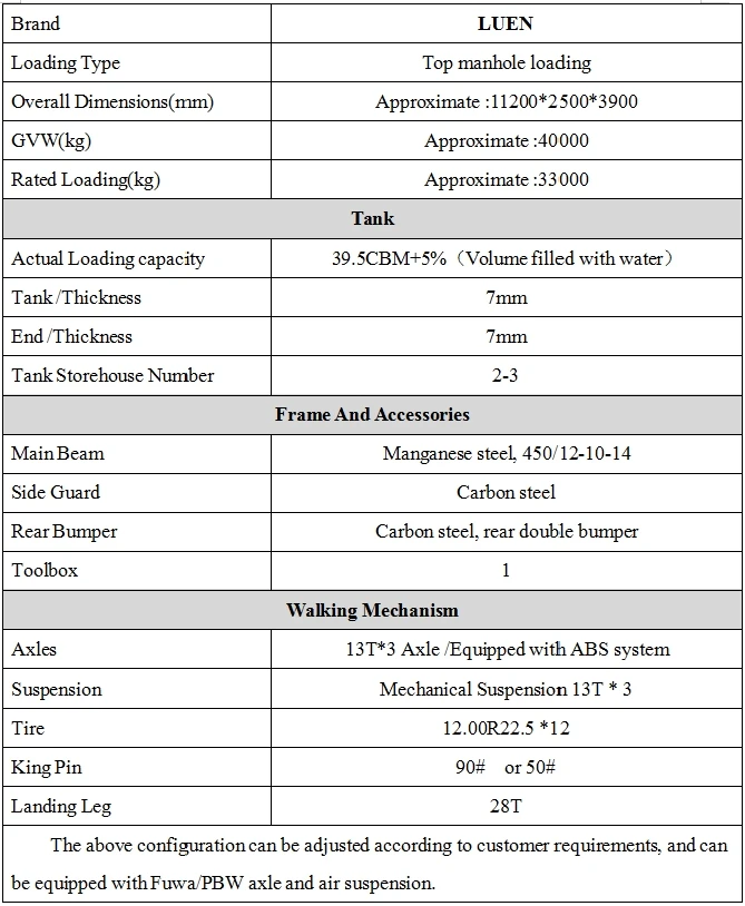 The above specifications are optional, and Fuwa/PBW axles can be configured.