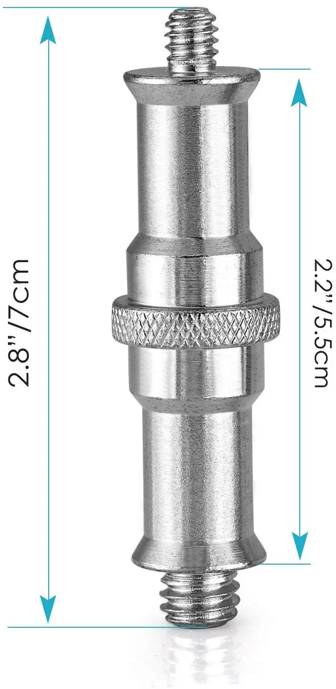 - Attachable to a range of different photography accessories such as studio light stand, hotshoe/coldshoe adapters, ball heads, wireless flash receivers, triggers and more. - Precision made spigot with 1/4" male to 3/8" male threaded screw adapter. - Easy to assemble and disassemble by hand. - All-metal material, electroplated surface, anti-wear, anti-oxidation, durable features.