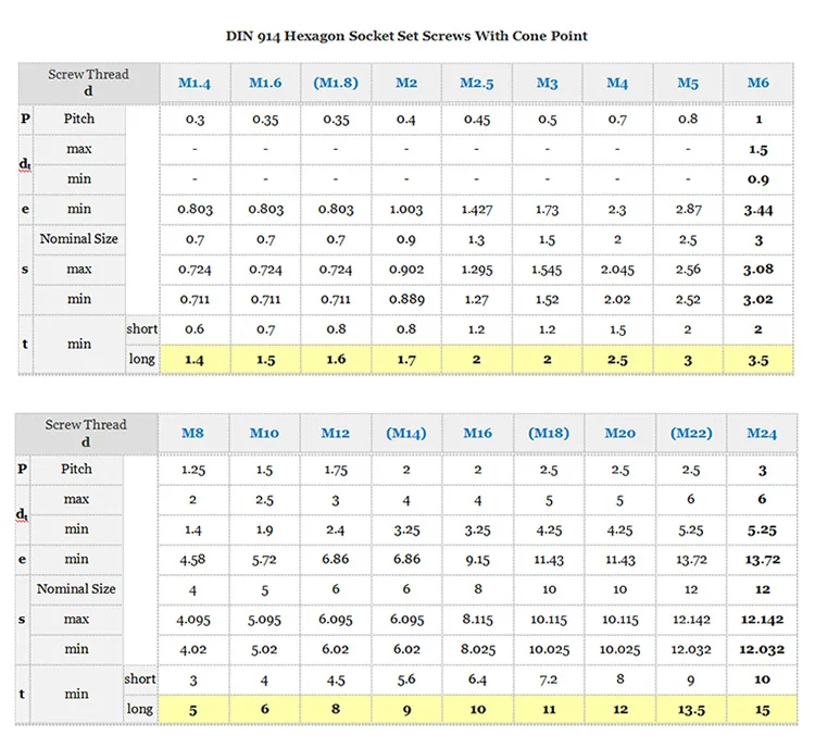 Item Name | Hexagon Socket Set Screws With Cone Point |