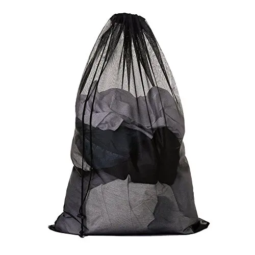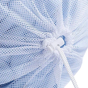 The mesh laundry bags have a locking drawstring closure to prevent spill of items.