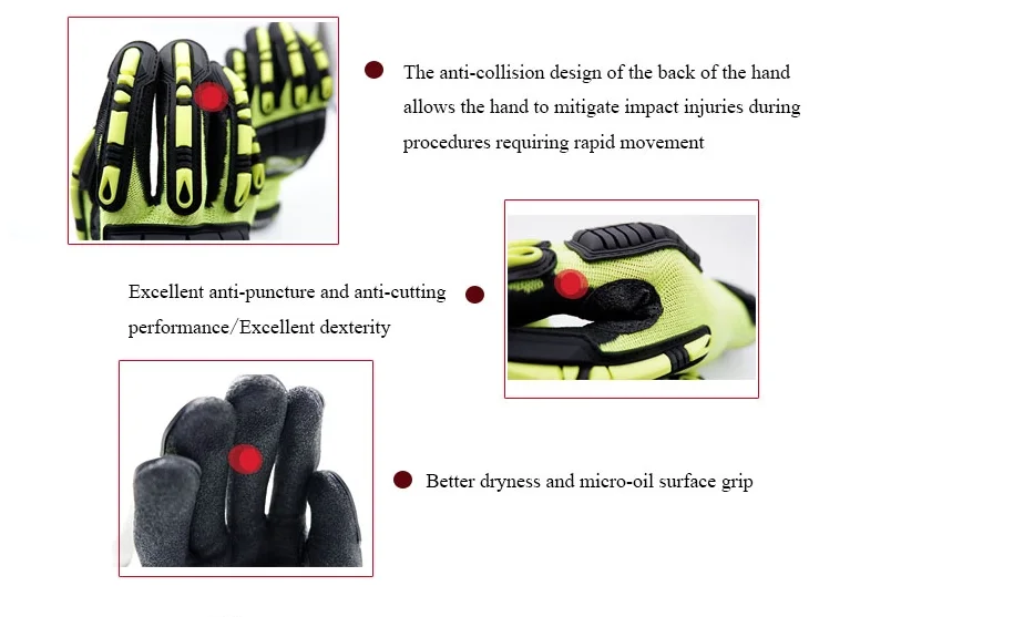 | Characteristic | The anti-collision design of the back of the hand makes the hand reduce the impact injury in the working procedure requiring rapid movement |