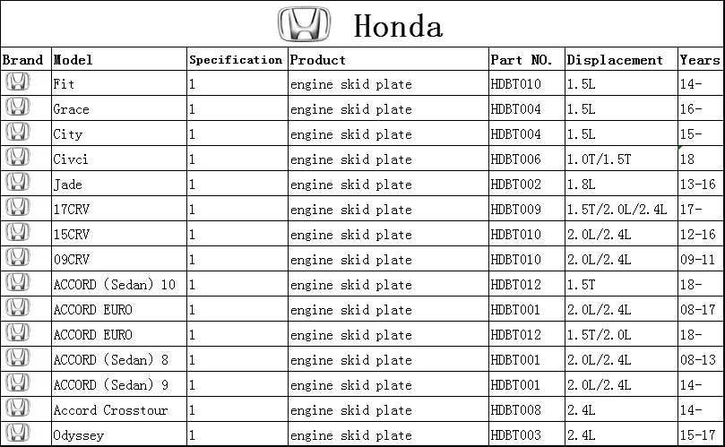 Specification | Engine Skid Plate | |
