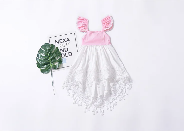 HaoBaby Explosion Models Ins Small Flying Sleeves Clothing For Kids Irregular Hollow Lace Fan Open Back Girl Dress