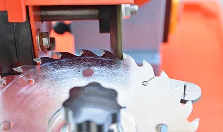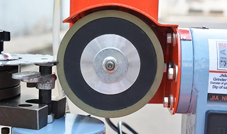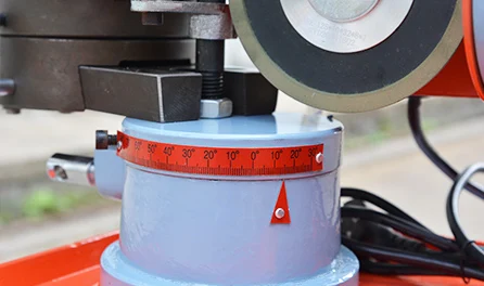 This machine is equipped with positioning pin, which can adjust to the optimalgrinding position according to blade s diameter and teeth s size, to ensure the conformity of grinding