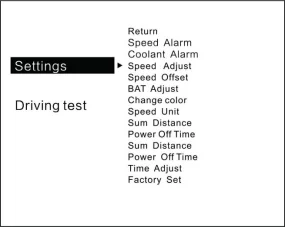 6.Rich Contents:driving speed,voltage,single driving distance,total driving distance,driving time,over speed alarm,freely switch between kilometers&miles.