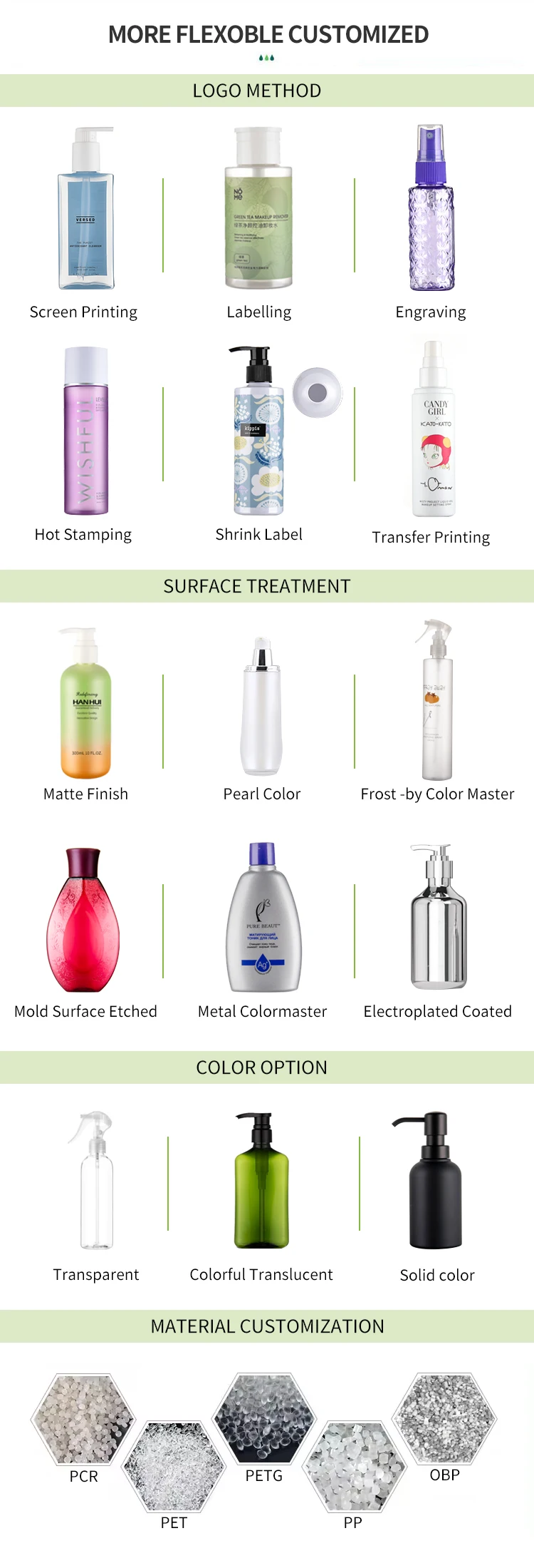 MATERIAL | PET / PCR(post consumer recycled) / PLA(polylactic acid) for your selection |