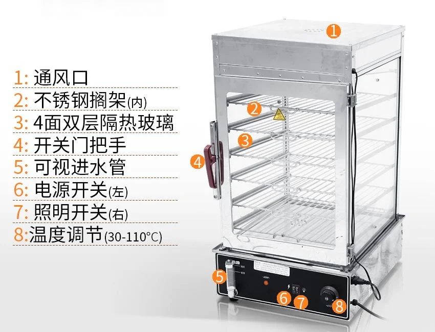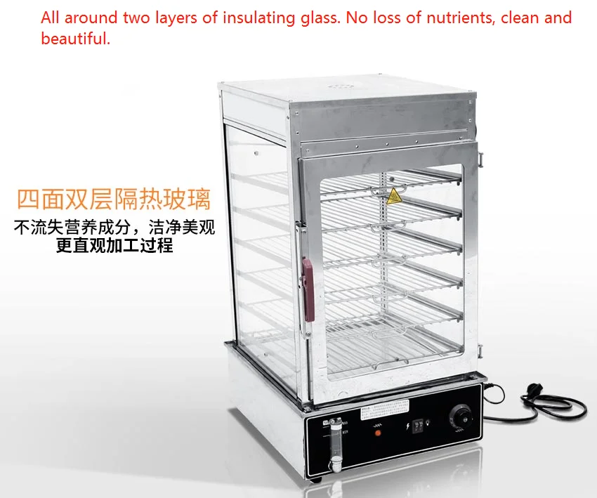 This machine is made of stainless steel, with two layers of insulating glass on all sides. It is small in size, not losing nutrients, clean and beautiful.Steam can appear in 2 minutes, high thermal efficiency, automatic temperature control, easy to operate.