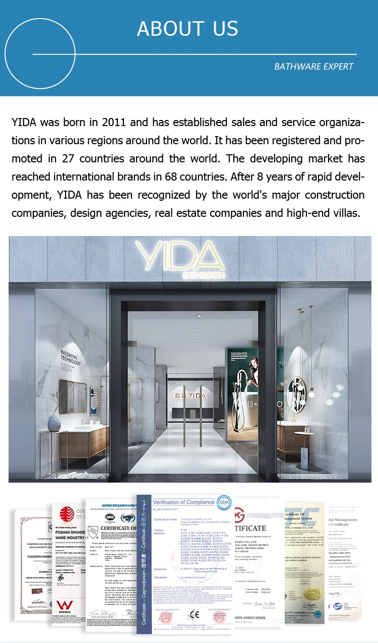 Q4: What is the Quality Grade & Guarantee Period of the material, surface finish and hardware fittings? A: We provide high quality wood material, A Grade material in the market. Our guarantee is 5 years. # Ceramics basin: A Grade; # Mirror: thickness 5mm glass with silver plated, environmental friendly mirror, 5-year guarantee; # Hardware fittings: Soft-close, 5-year guarantee;