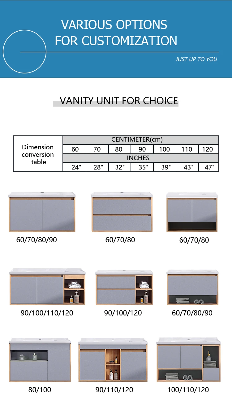 assurance system. Production Capacity>80K sets/month. (2) Choose eco-friendly materials and high quality accessories. (3) A variety of standard types of vanity unit and mirror (cabinet) options,
